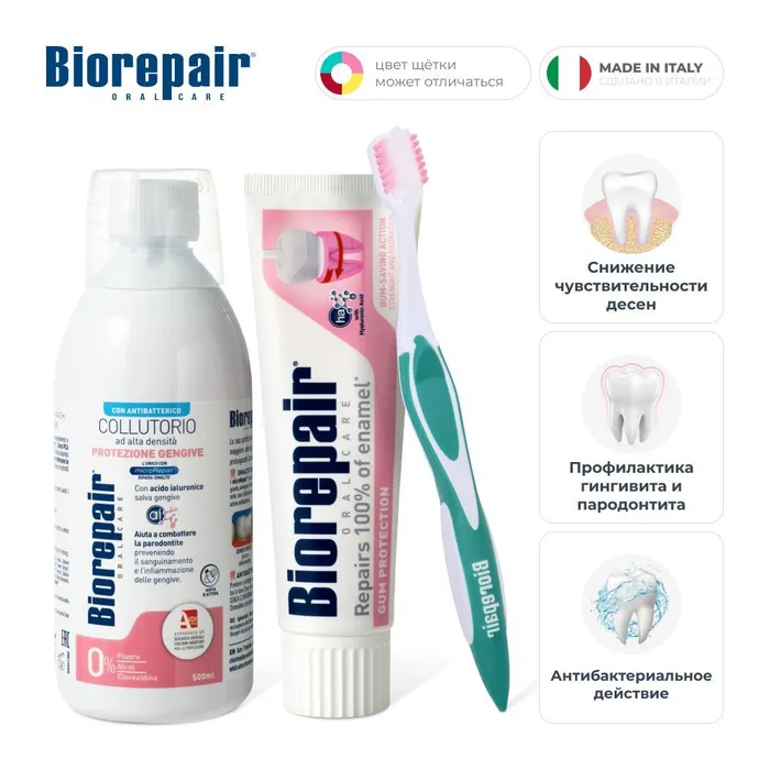 Набор обеспечит бережный уход за чувствительными зубами. В состав очищающего геля со вкусом марокканской мяты включили гиалуроновую кислоту и золотую пудру, которая славится своими антибактериальными и восстанавливающими свойствами. Зубная щетка с густой и мягкой щетиной аккуратно полирует эмаль, не травмируя десны, гель содержит чистейшую альпийскую ледниковую воду. Гиалуроновая кислота, так широко используемая в косметологии, впервые представлена в составе зубной пасты и это абсолютно оправдано. Ее уникальное увлажняющее свойство помогает сохранять эластичность, упругость и тонус мягких тканей полости рта. Помимо этого, она способствует быстрому заживлению ран, нейтрализует свободные радикалы, активизирует клетки и выполняет защитную функцию. Гель для зубов содержит муцин, естественный протеин, который защищает зубы от деминерализации, а десны от бактериальной инфекции